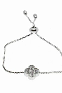 Toptan Gümüş Renk Yonca Model Asansör Zirkon Bileklik – 2012