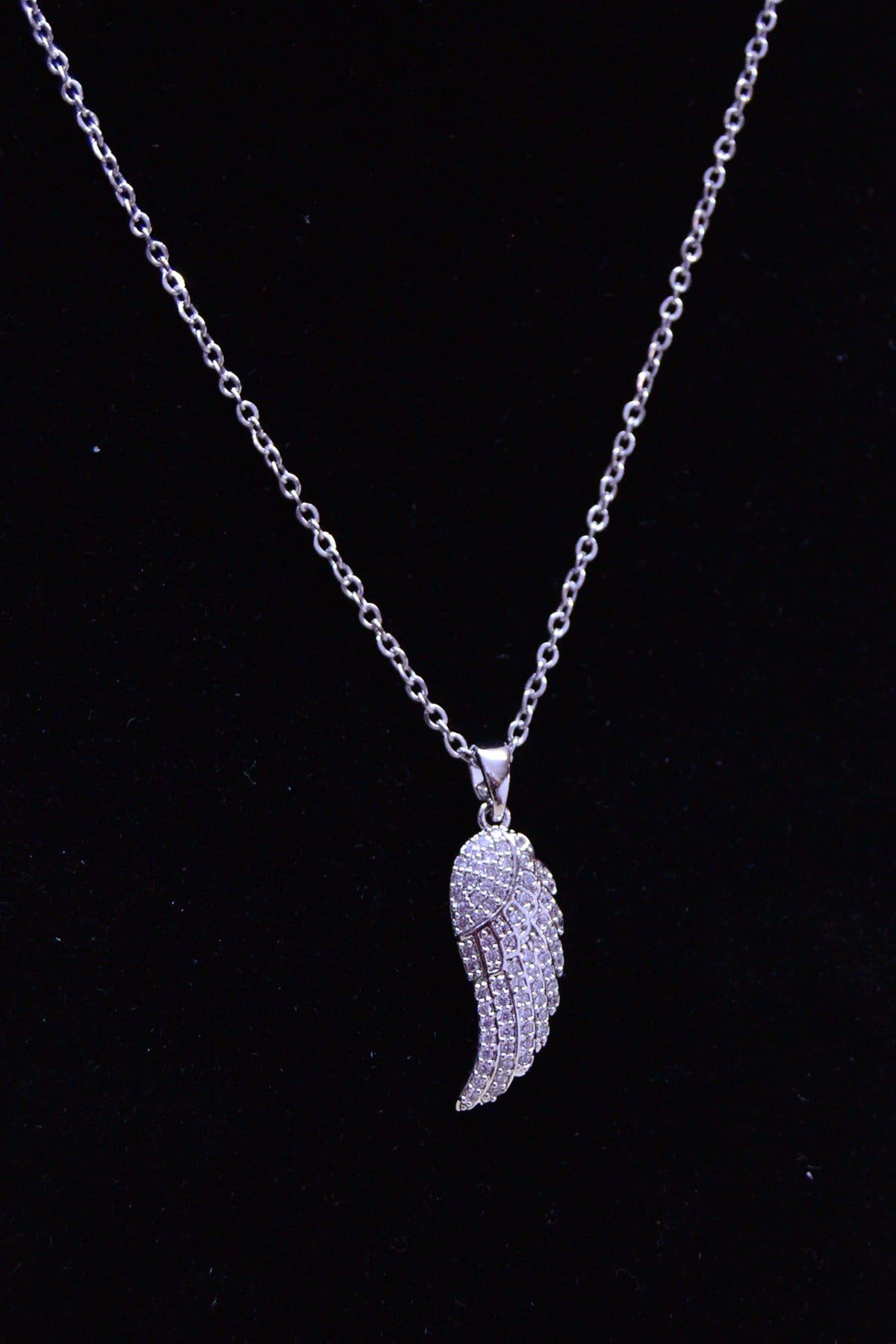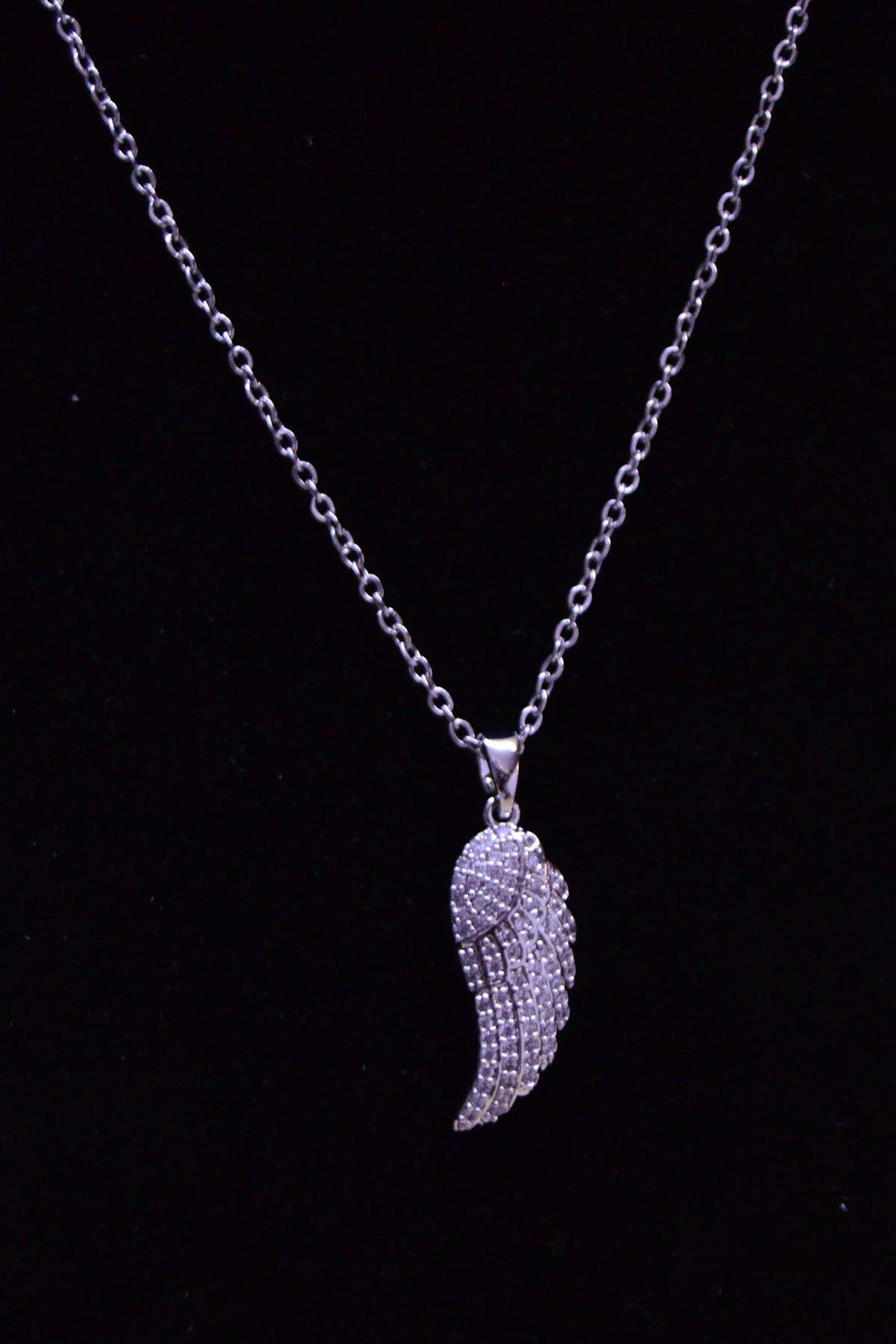 Toptan Gümüş Renk Kanat  Çelik Kolye - 2493