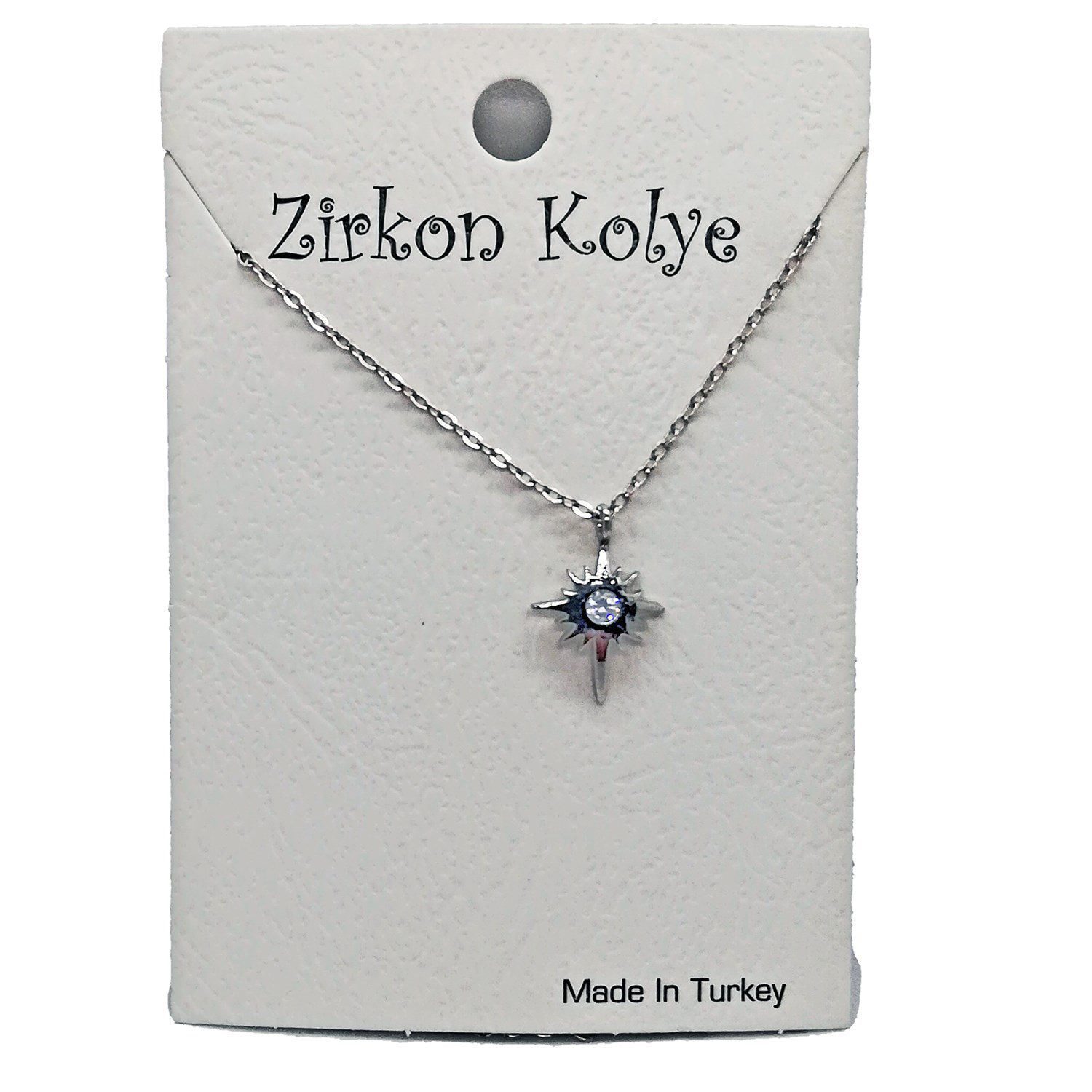 Toptan Gümüş Renk Zirkon Taşlı Kuyruklu Kutup Yıldızı Kolye  1118
