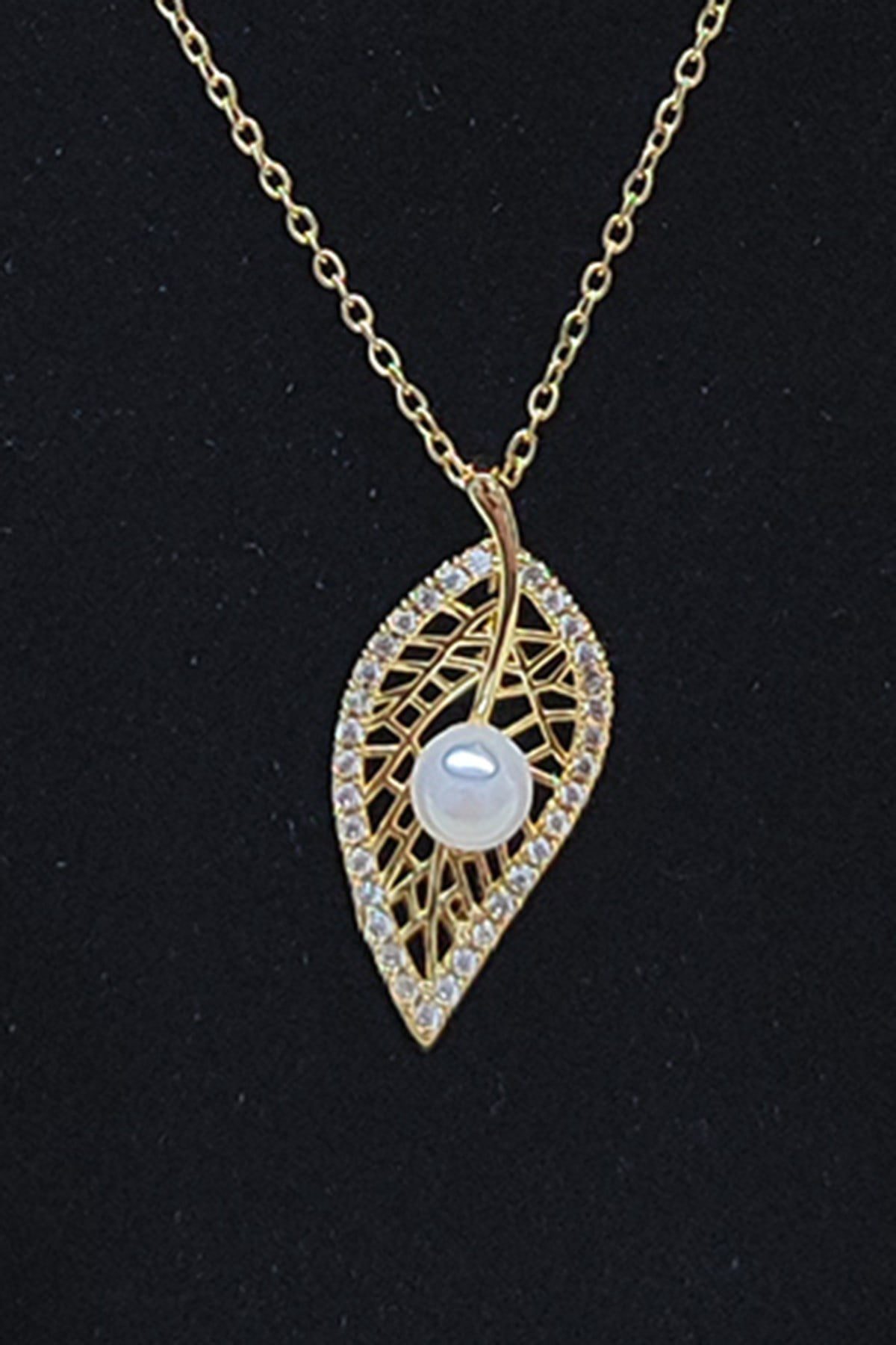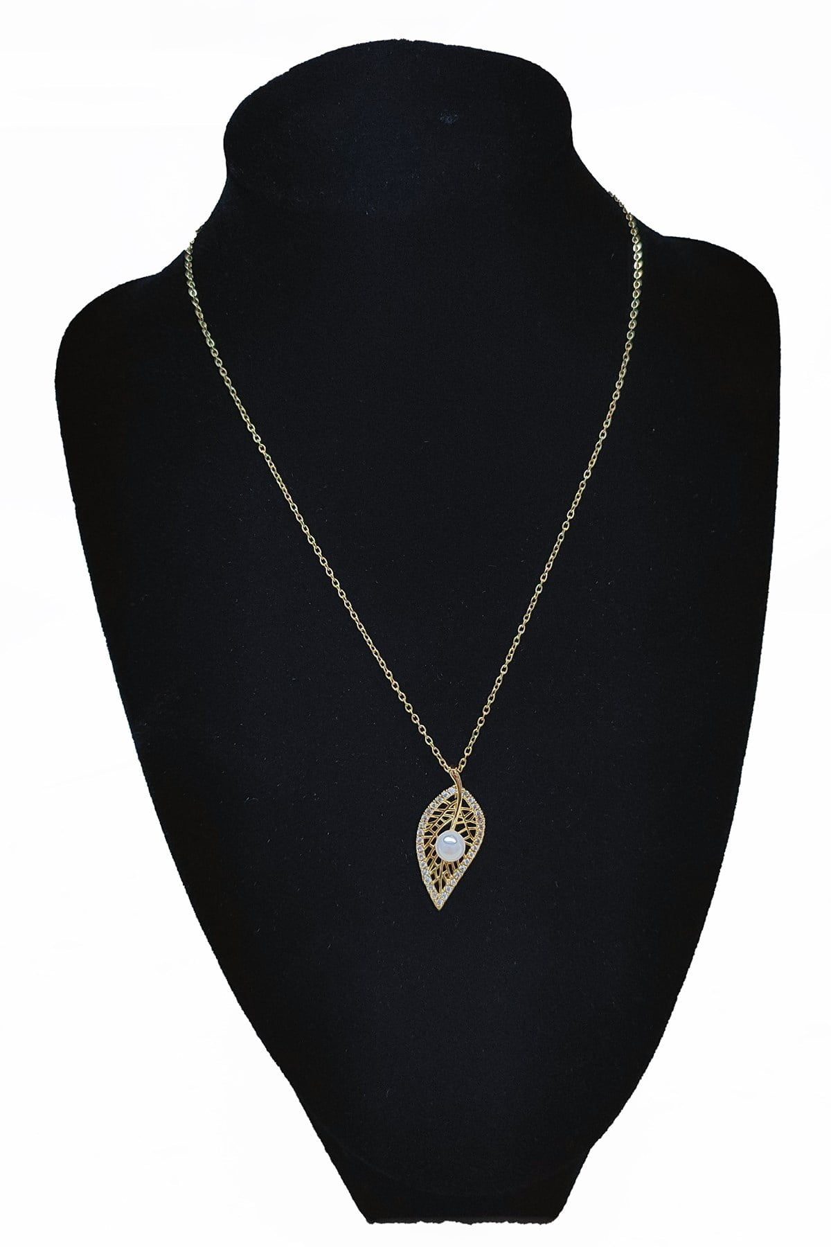 قلادة من الفولاذ مرصعة باللؤلؤ باللون الذهبي للبيع بالجملة - 2533