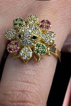 Toptan Altın Renk Yeşil Kırmızı Zirkon Taş İşlemeli Model Ucu Dönen Ayarlanabilir Çelik Yüzük – 3085