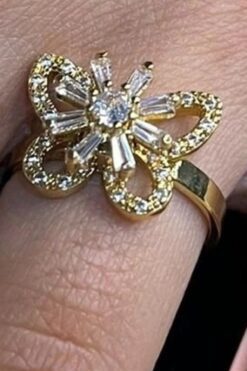 Toptan Altın Renk Kelebek Baget Model Zirkon Taşlı Ayarlanabilir Ucu Dönen Çelik Yüzük – 3089