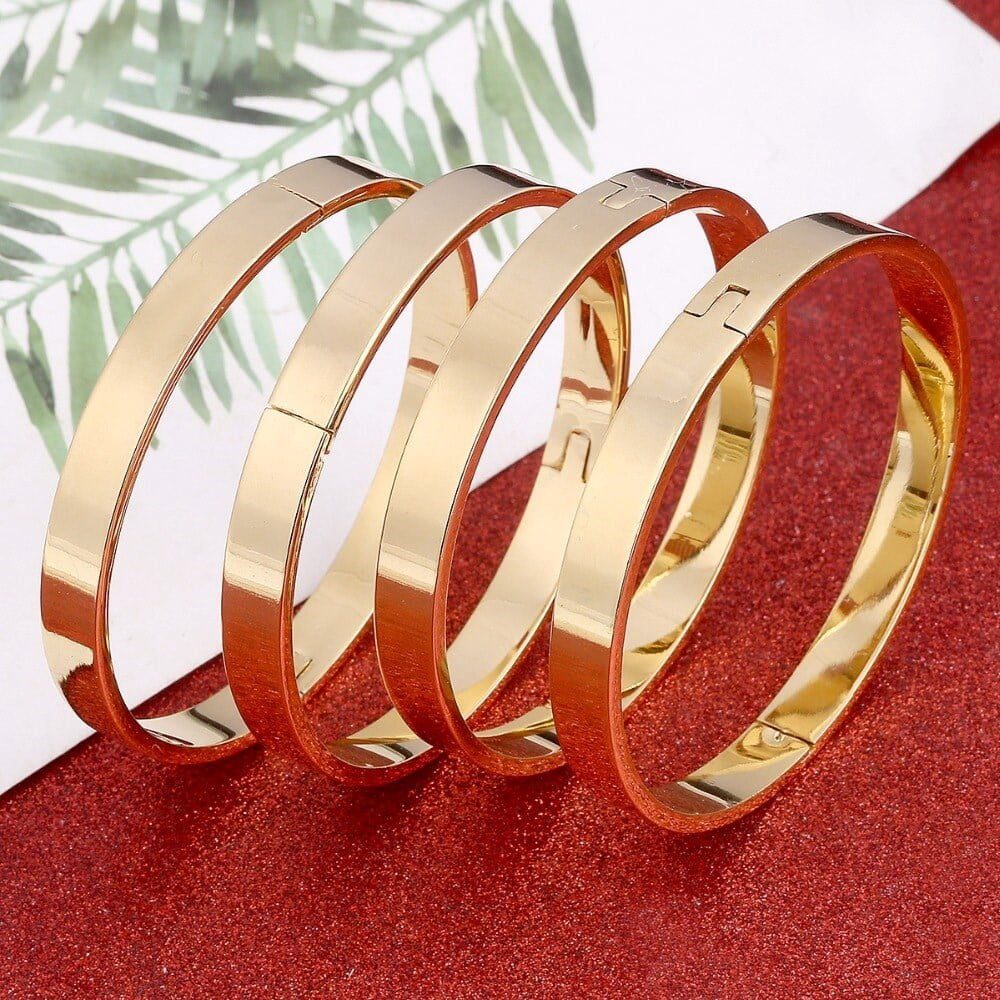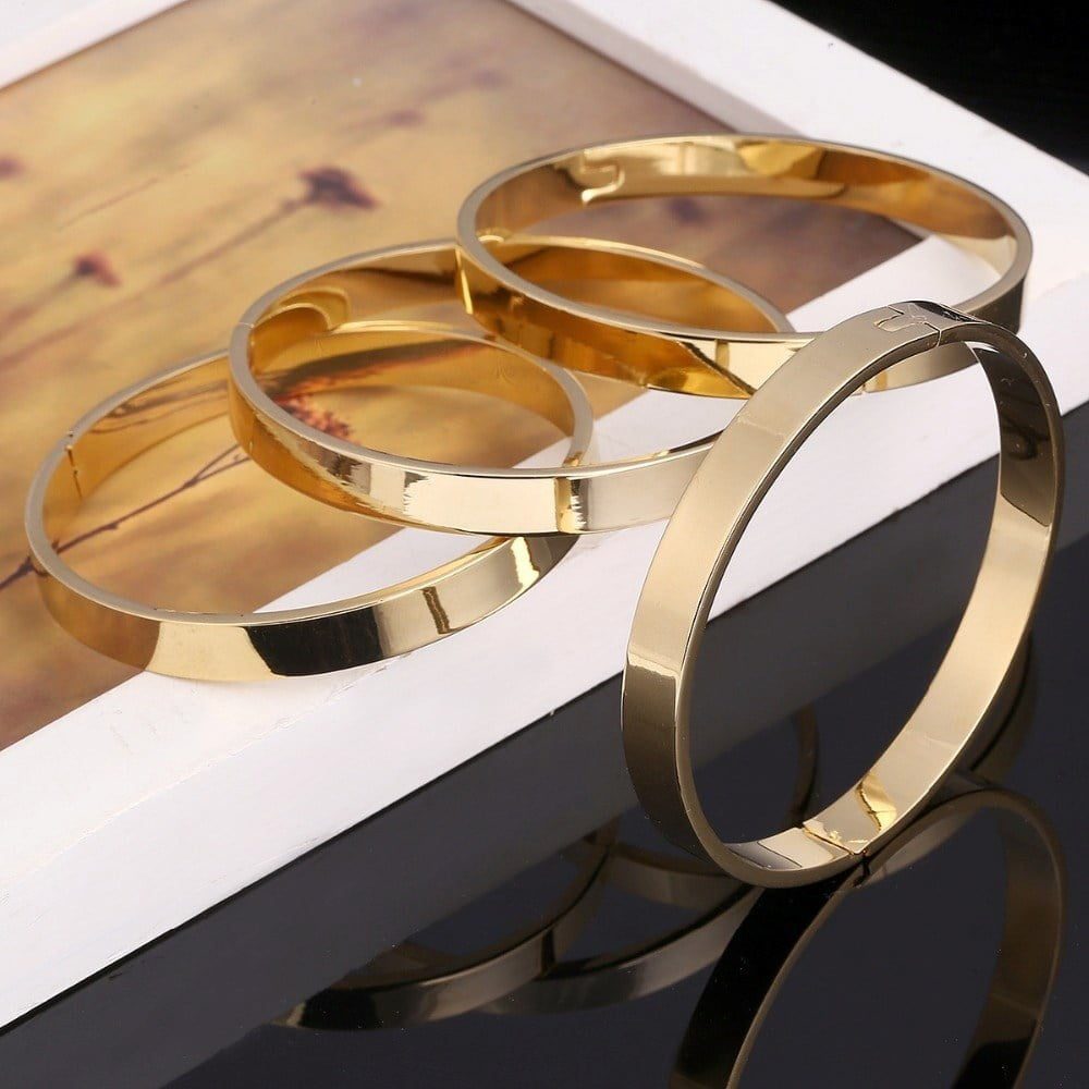 Toptan Altın Renk Gold Detaylı 4’lü Kalın Düz Ajda Bilezik Kelepçe- 238