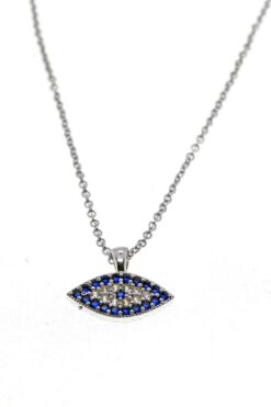 Toptan Gümüş Renk Mekik Göz Nazar Model Zirkon Kolye – 2311