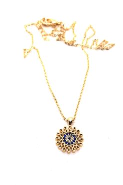 Toptan Altın Renk Zirkon Taşlı Yuvarlak Nazar Sonsuzluk Kolye – 1129