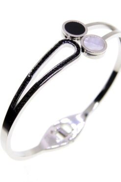 Toptan Gümüş Renk Seiyah Beyaz Sedef Model Çelik Kelepçe Bileklik – 2638