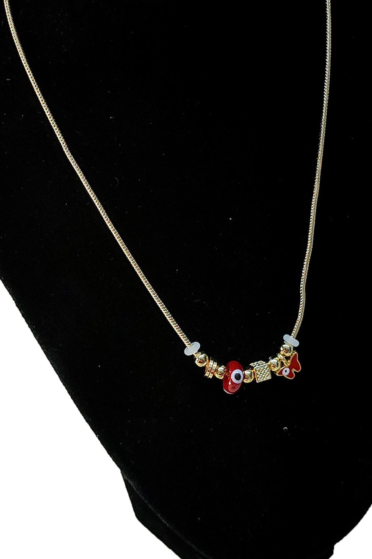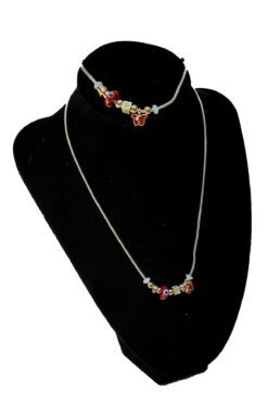 Großhandel Gold Farbe rot Emaille Schmetterling Halskette und Armband Pandora Kombination Zirkon Set Set - 2788