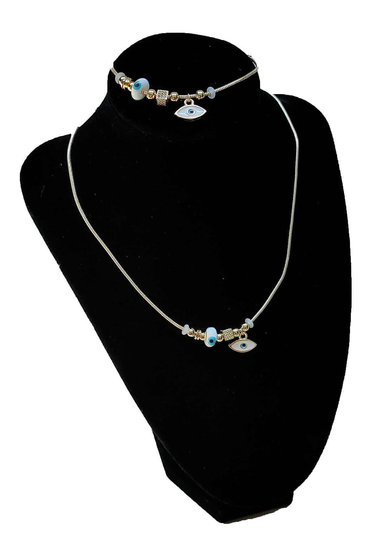 Großhandel Goldfarbene weiße Emaille Shuttle Halskette und Armband Pandora Kombination Zirkon Set Set - 2786