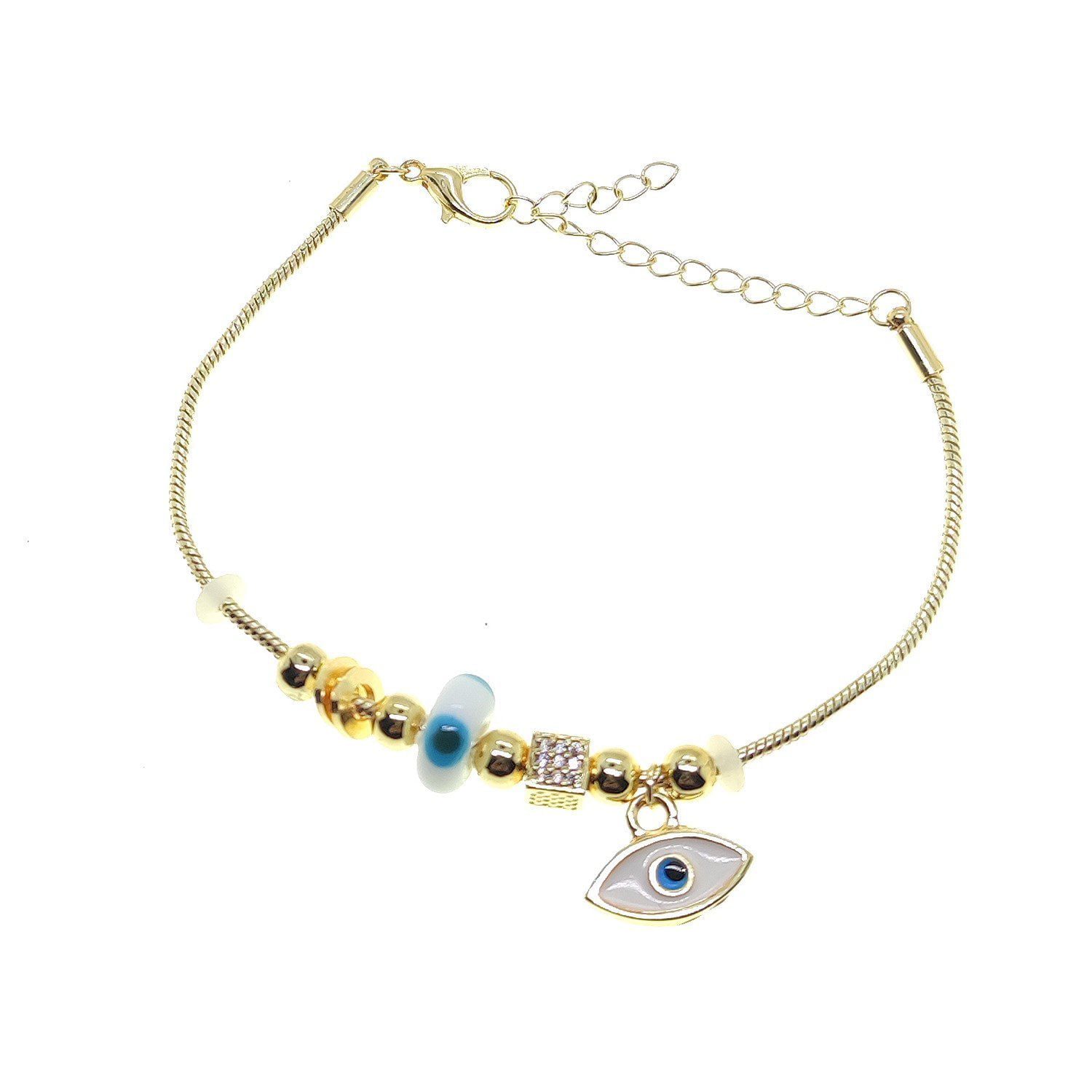 Großhandel Goldfarbene weiße Emaille Shuttle Halskette und Armband Pandora Kombination Zirkon Set Set – 2786
