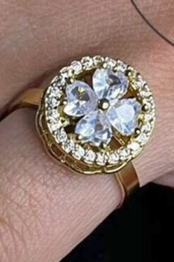 Großhandel Goldfarbener Herzsteinrahmen Vierblättriges Modell Zirkon Verstellbare Spitze Drehbarer Stahlring – 3108