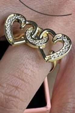 Toptan Altın Renk Çift Kalp Model Zirkon Taşlı Çelik Ayarlanabilir Çelik Yüzük – 3113