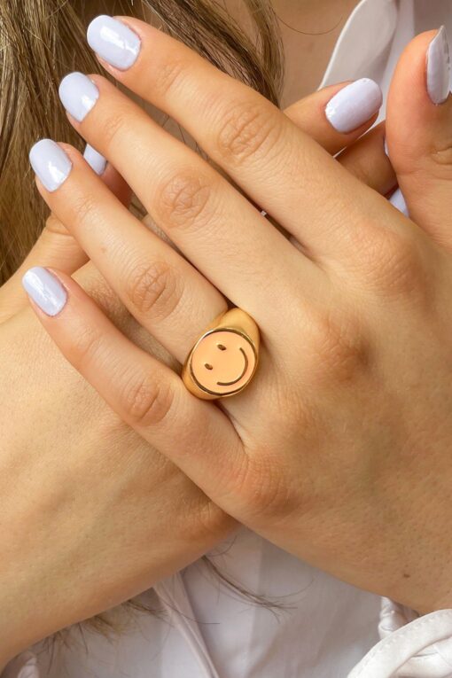 Großhandel Orange Emaille Smiley Ring - vergoldet, einstellbar