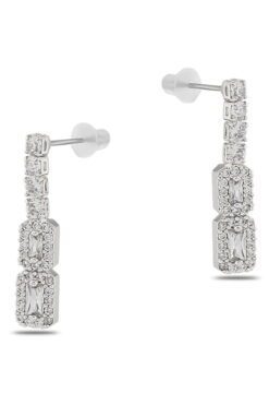 Toptan Gümüş Renk Şerit Sallantılı Çivili Zirkon Küpe – 1318