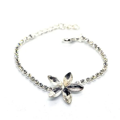 Silberfarbenes Bandarmband im Abendstil, 15 cm plus 5 cm Verlängerung erhältlich, insgesamt 20 cm.