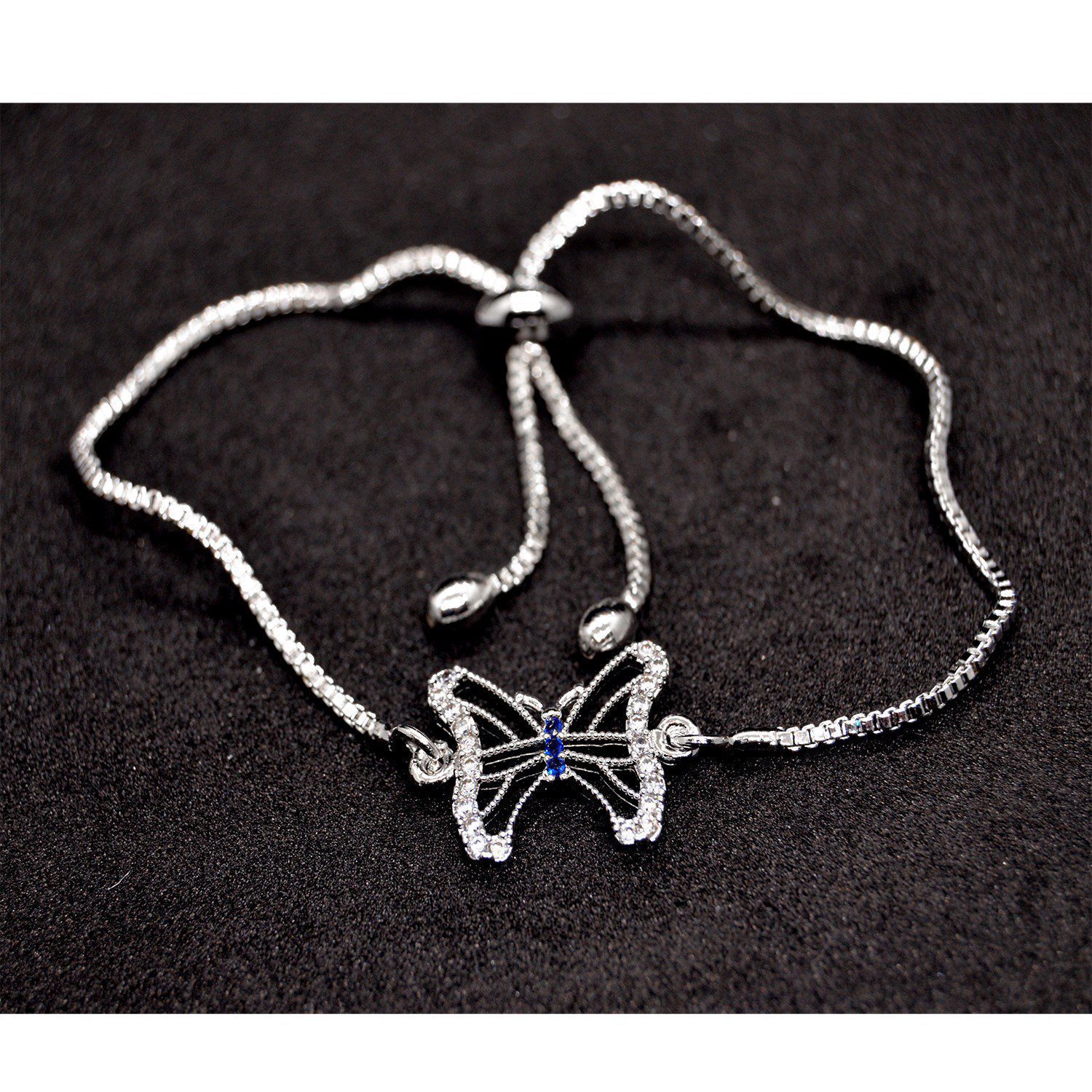 Großhandel Silber Farbe Zirkon Stein Blau Schmetterling Aufzug Armband 847