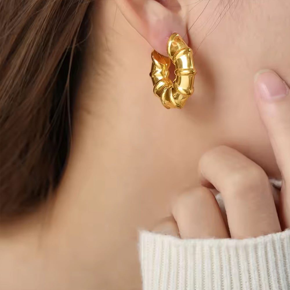 Toptan Altın Renk Halka Küpe Vip Kararmaz Solmaz Çelik Küpe – 3035