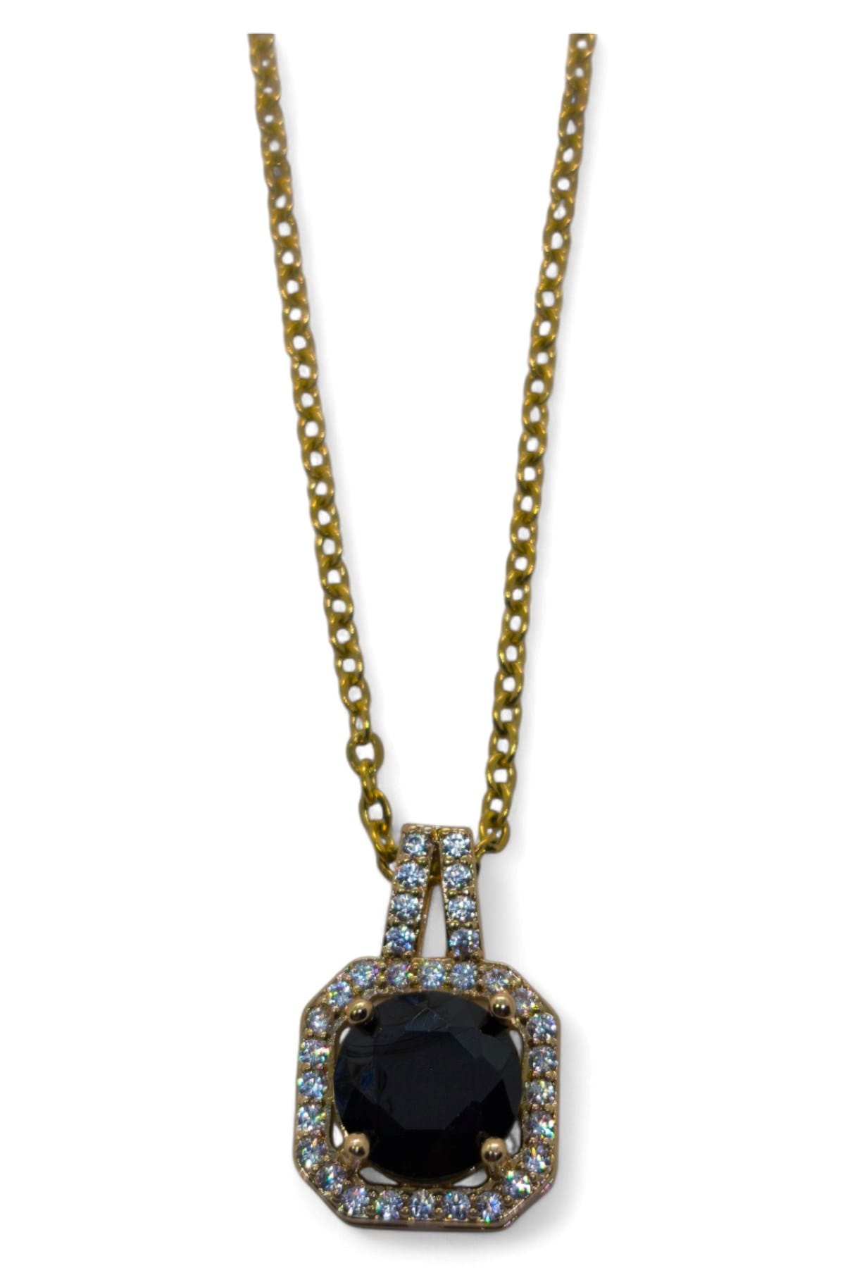 Toptan Altın Renk Kare Siyah Taş Sf Zincir Çelik Kolye – 3741