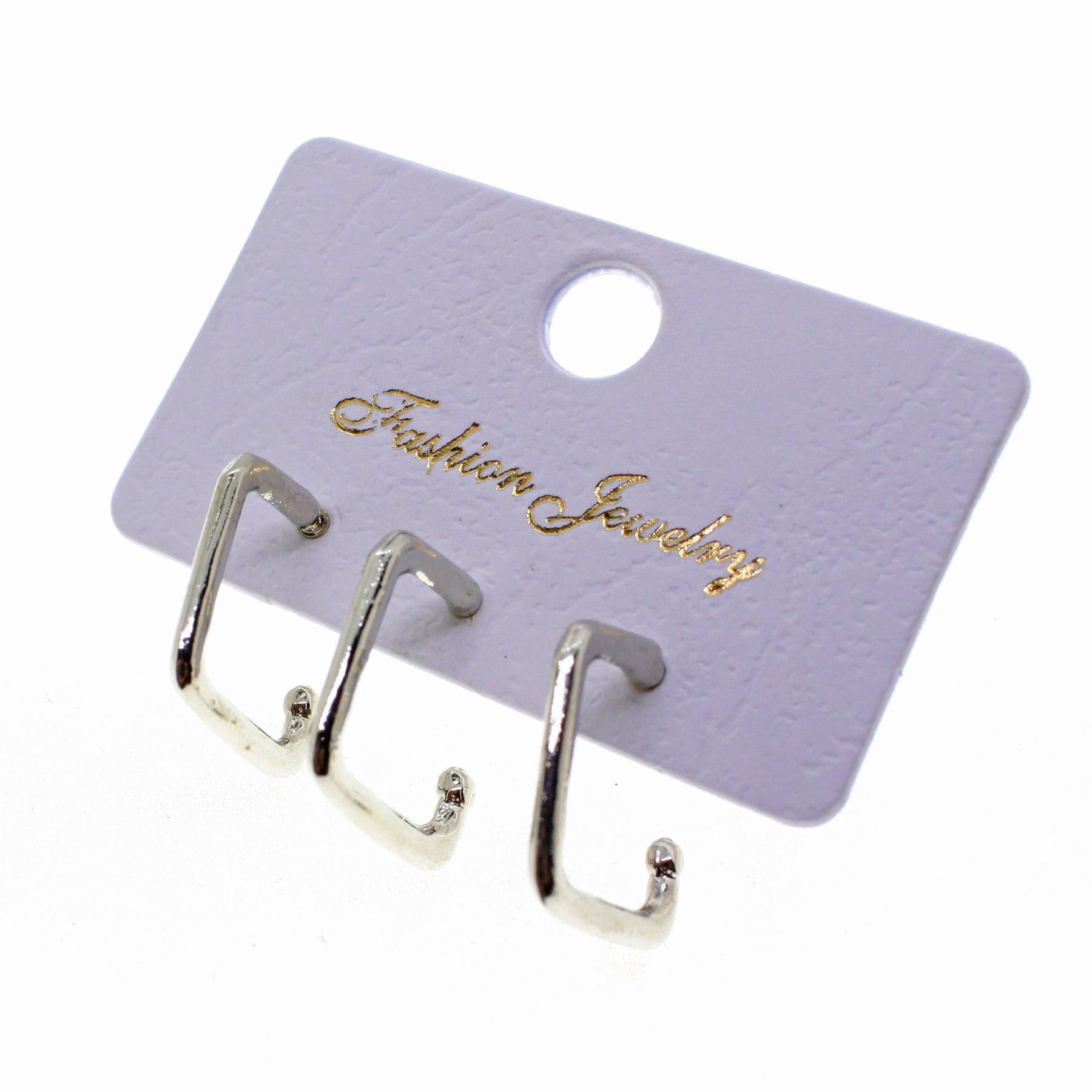 Toptan Gümüş Renk Üçlü Kombin Küpe – 1840