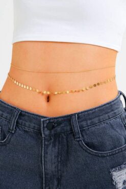 Toptan Shine Minik Pullu Bel Zinciri 2’li Gold