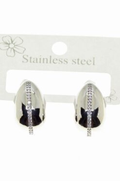 Toptan Gümüş Renk Zirkon Taş Gözyaşı Bottega Küpe Vip Kararmaz Solmaz Çelik Küpe – 3028