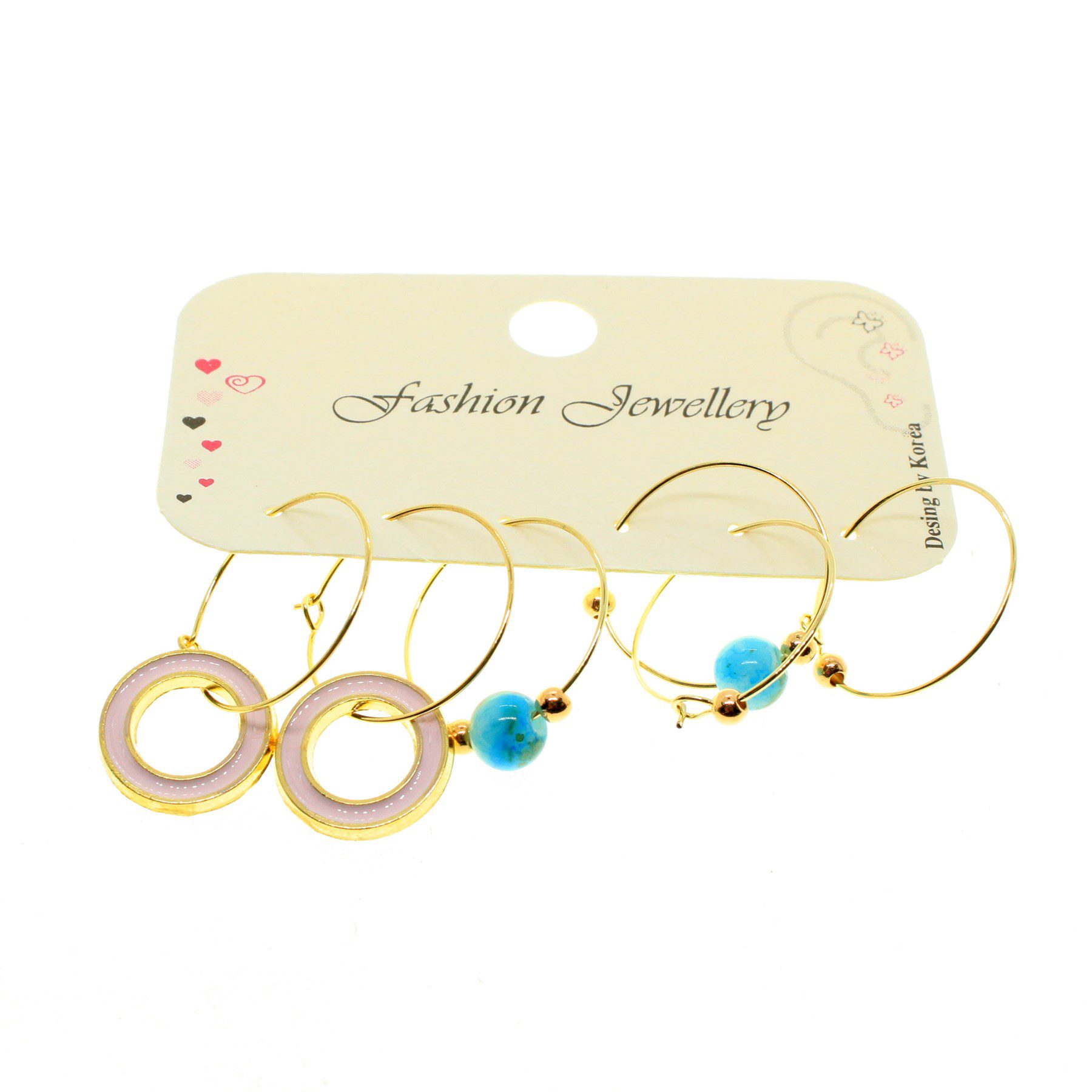 Wholesale Gold Color Blue Beads Round Sequin Stylish Dangle Handcrafted Combination Earrings - 2223