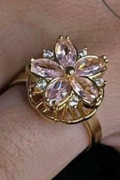 Toptan Altın Renk Pembe Lotus Model Zirkon Taşlı Çelik Ayarlanabilir Ucu Dönen Çelik Yüzük – 3109