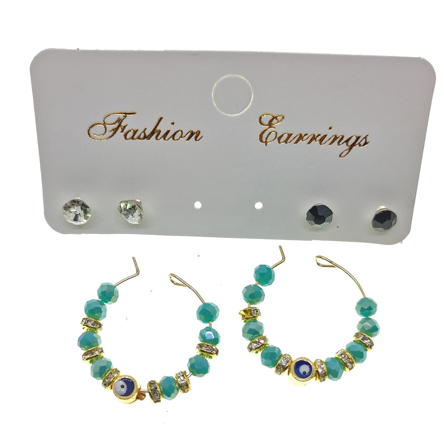 Wholesale Gold Color Triangle Model Eye Evil Eye Enamel Combination Earrings - 2157