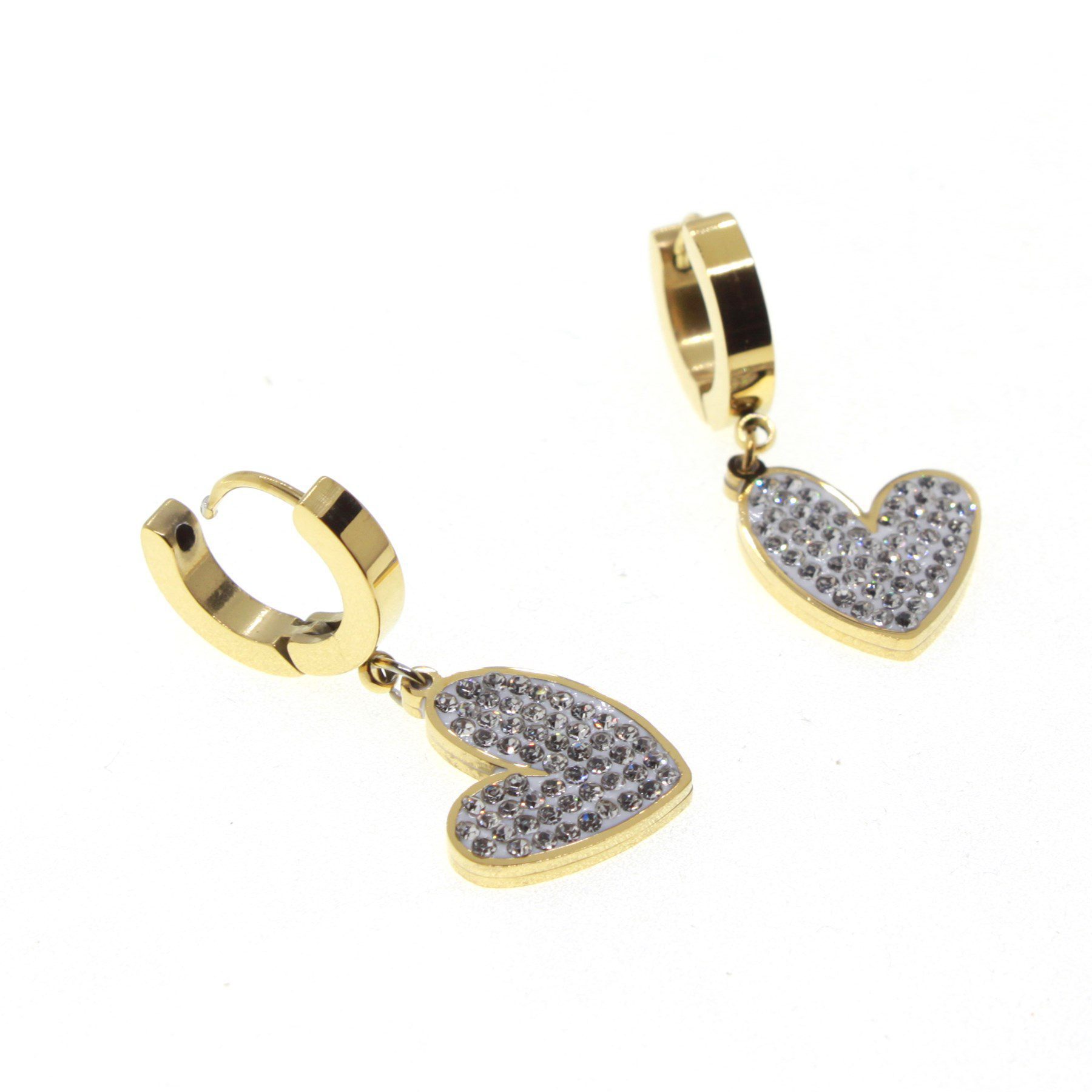 Wholesale Gold Color Mengec Stone Heart Steel Earrings - 1576