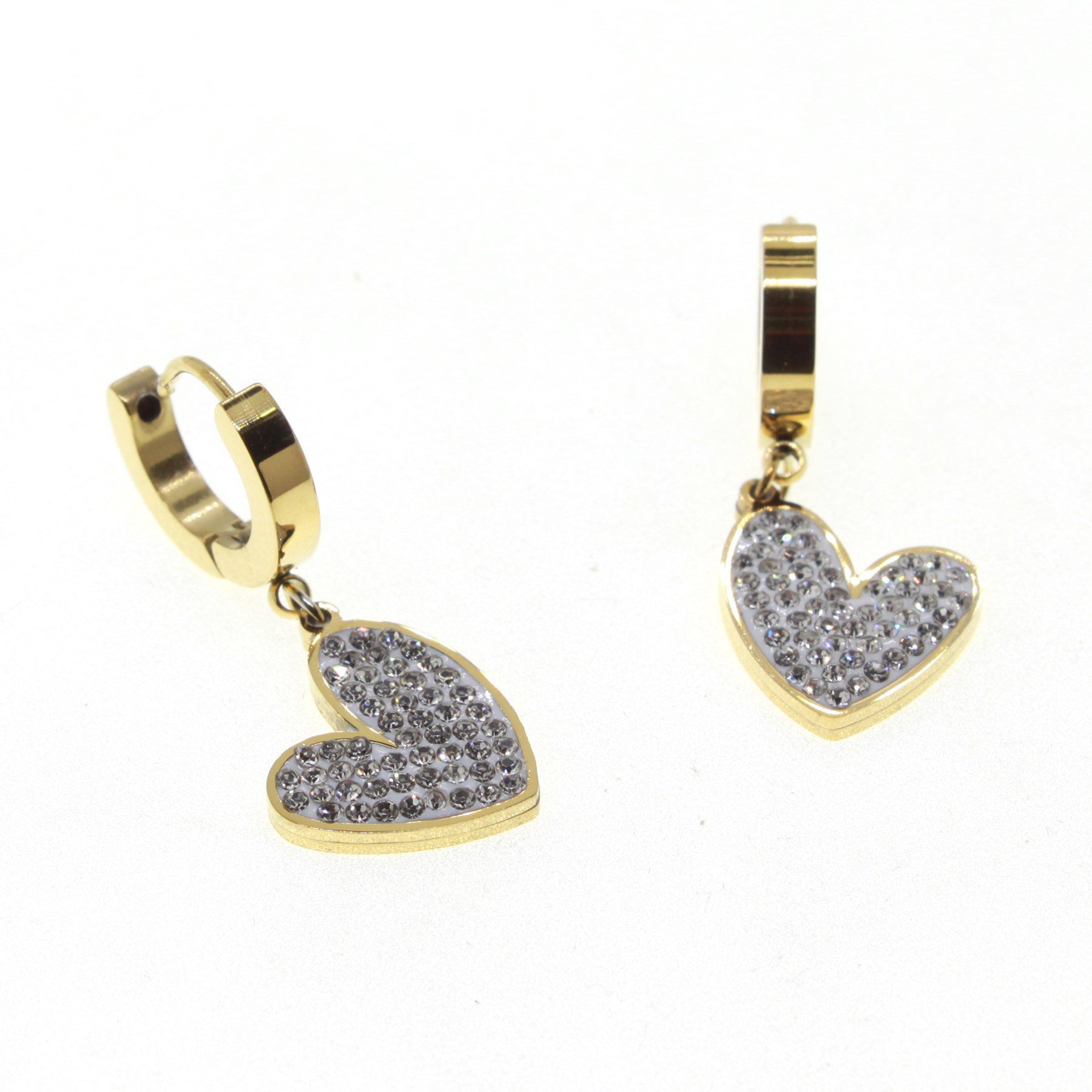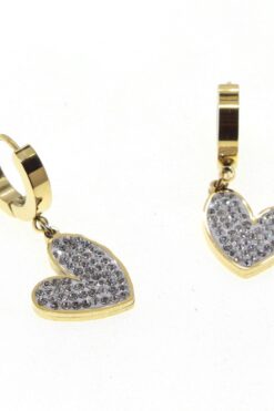 Wholesale Gold Color Mengec Stone Heart Steel Earrings – 1576