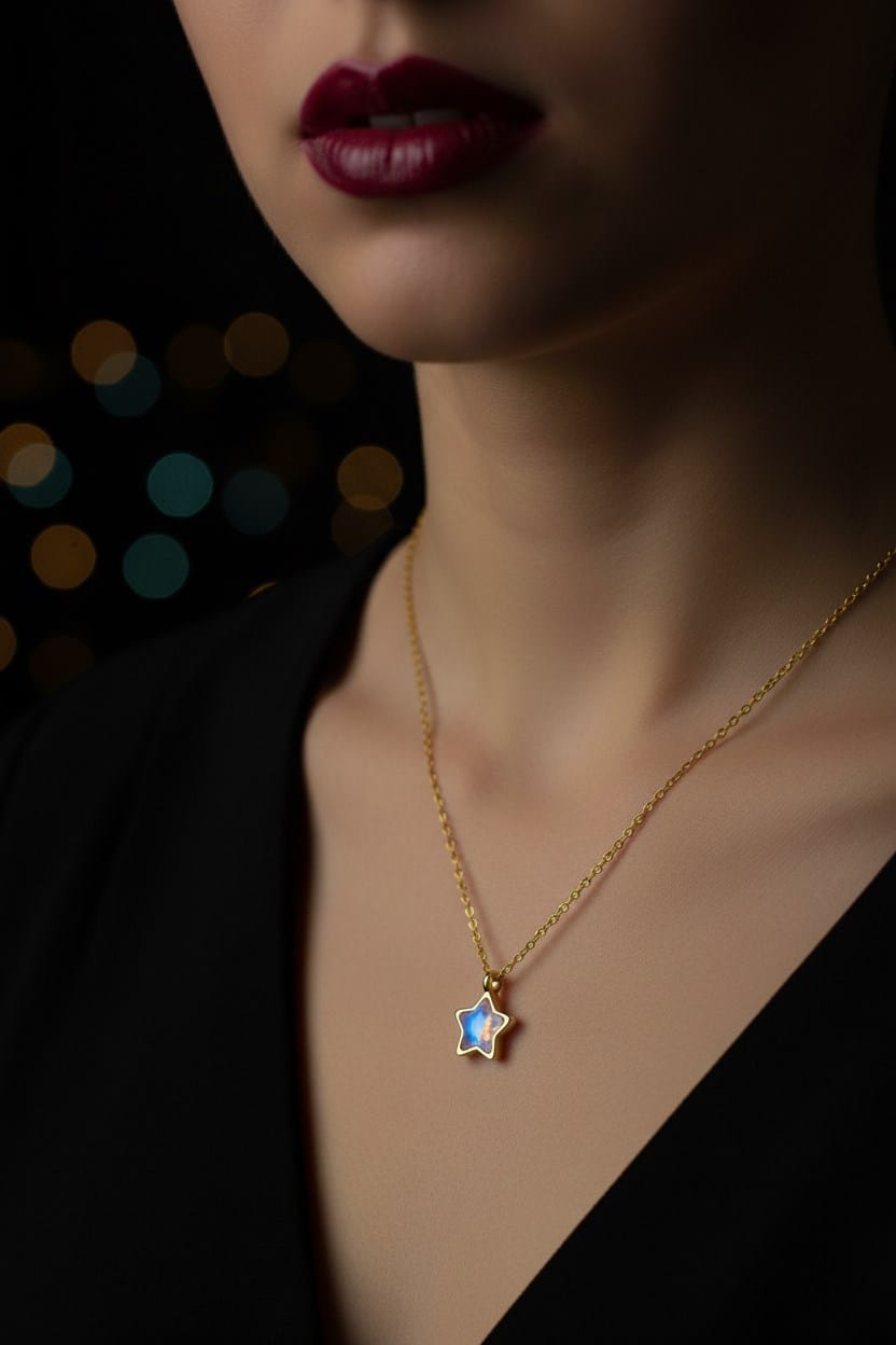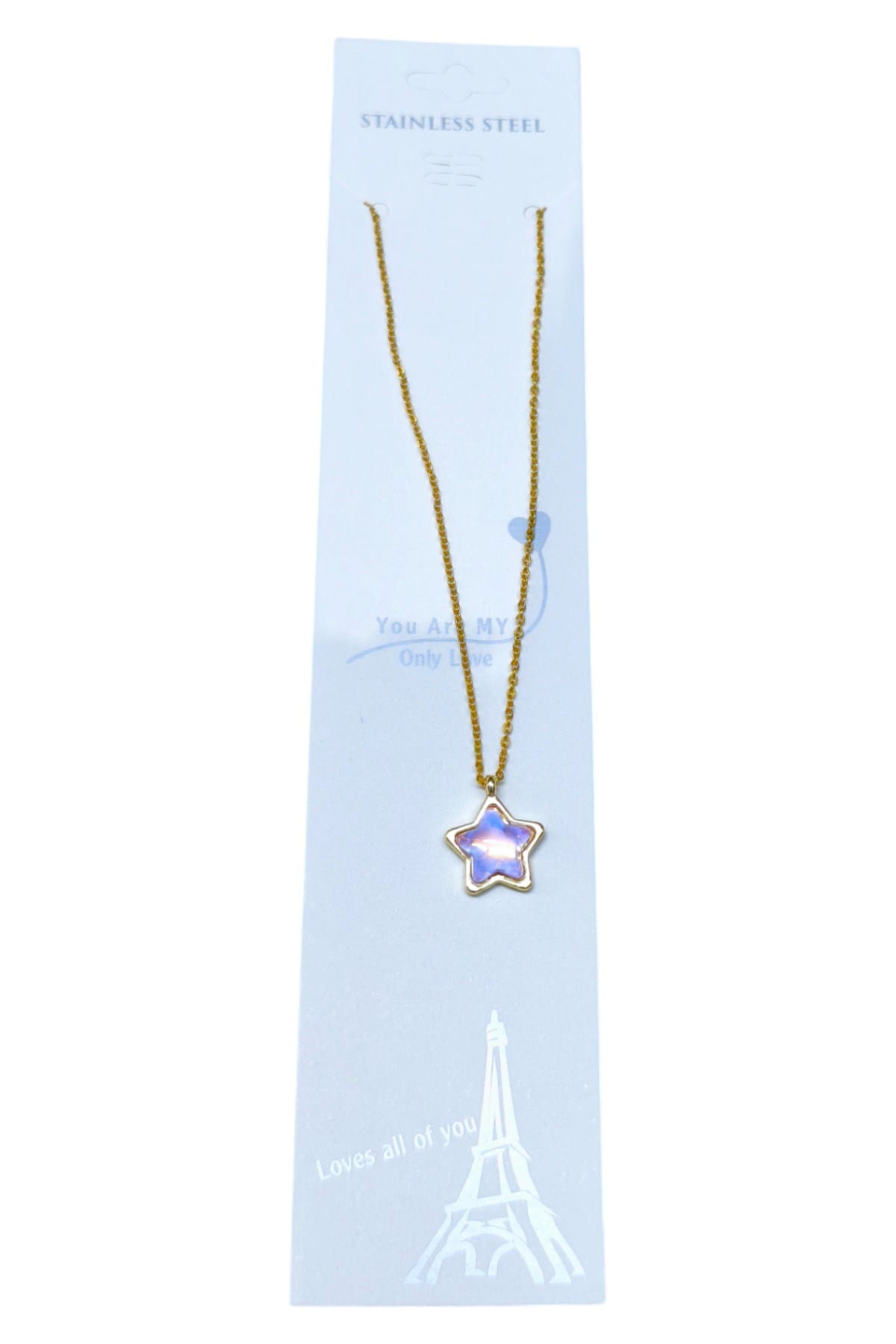 Wholesale Gold Color Cancan White Stone Star Model SF Chain Steel Necklace – 3762