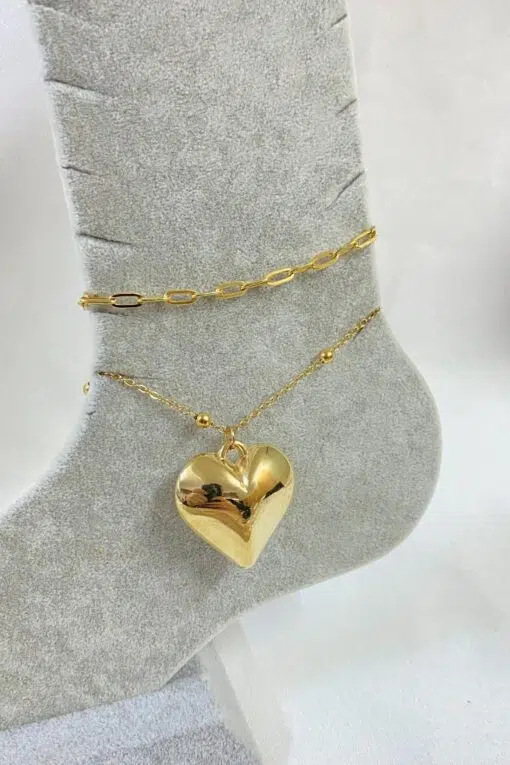 Wholesale Gold Color Heart Model Crush And Ball Chain Steel Anklet – 3253
