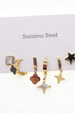 Boucles d'oreilles en acier inoxydable, forme étoile et trèfle couleur or, vente en gros - 1608