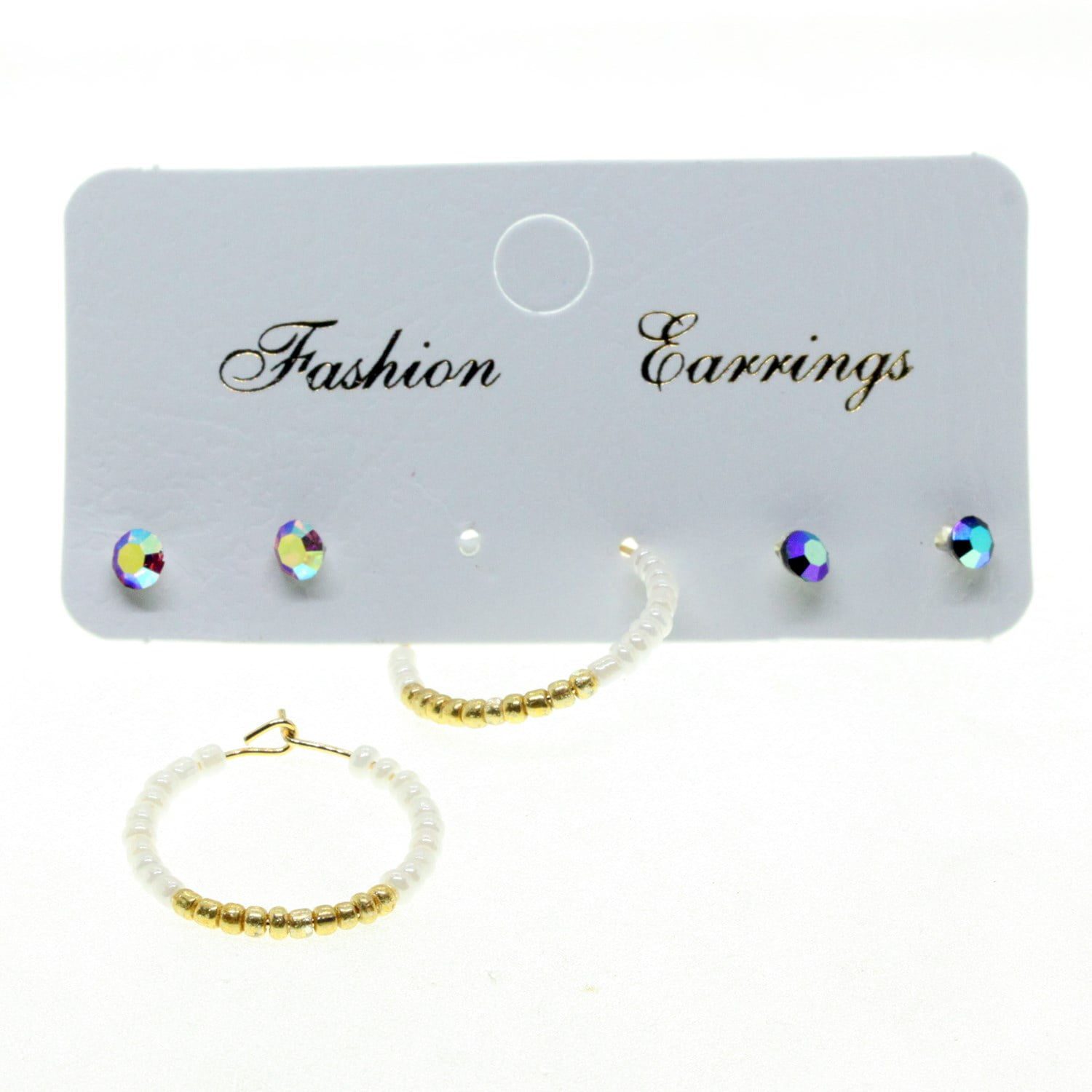 Boucles d'oreilles en perles blanches rondes combinées couleur or en gros - 2830