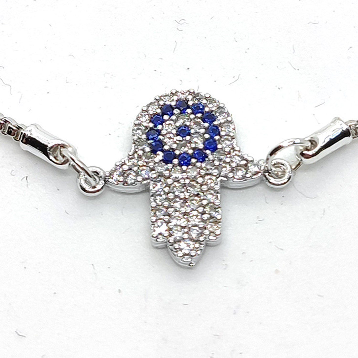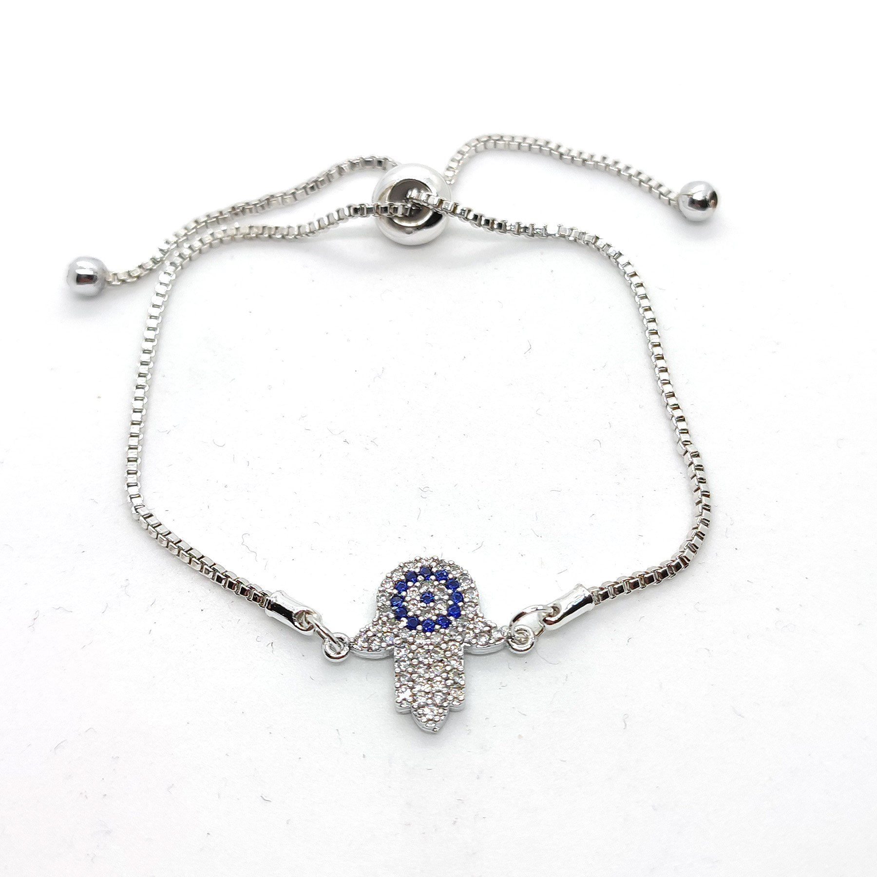 Toptan Gümüş Renk Zirkon Taşlı Nazar EL Asansör Bileklik