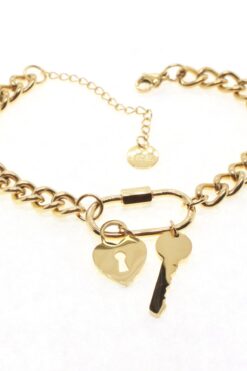 Toptan Altın Renk Kalp Anahtar Model Çelik Bileklik – 1637
