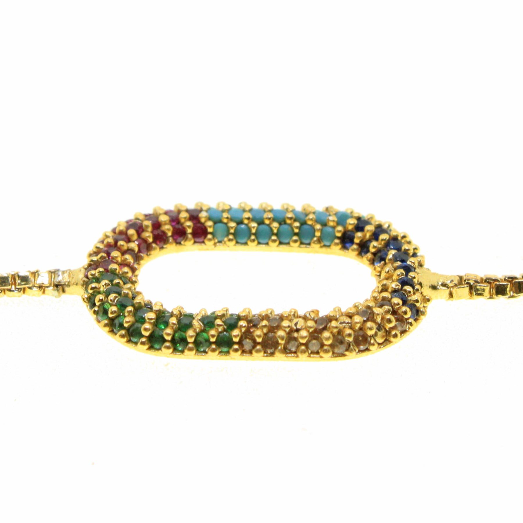 Grossiste Bracelet Triangle Couleur Or Modèle Lift Zircon avec Pierre de Couleur - 2052