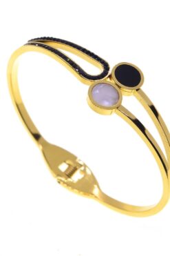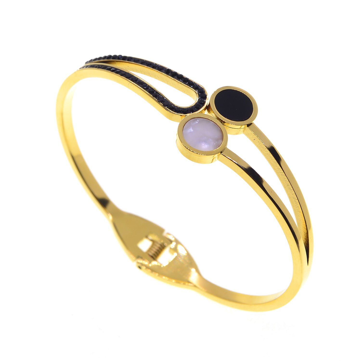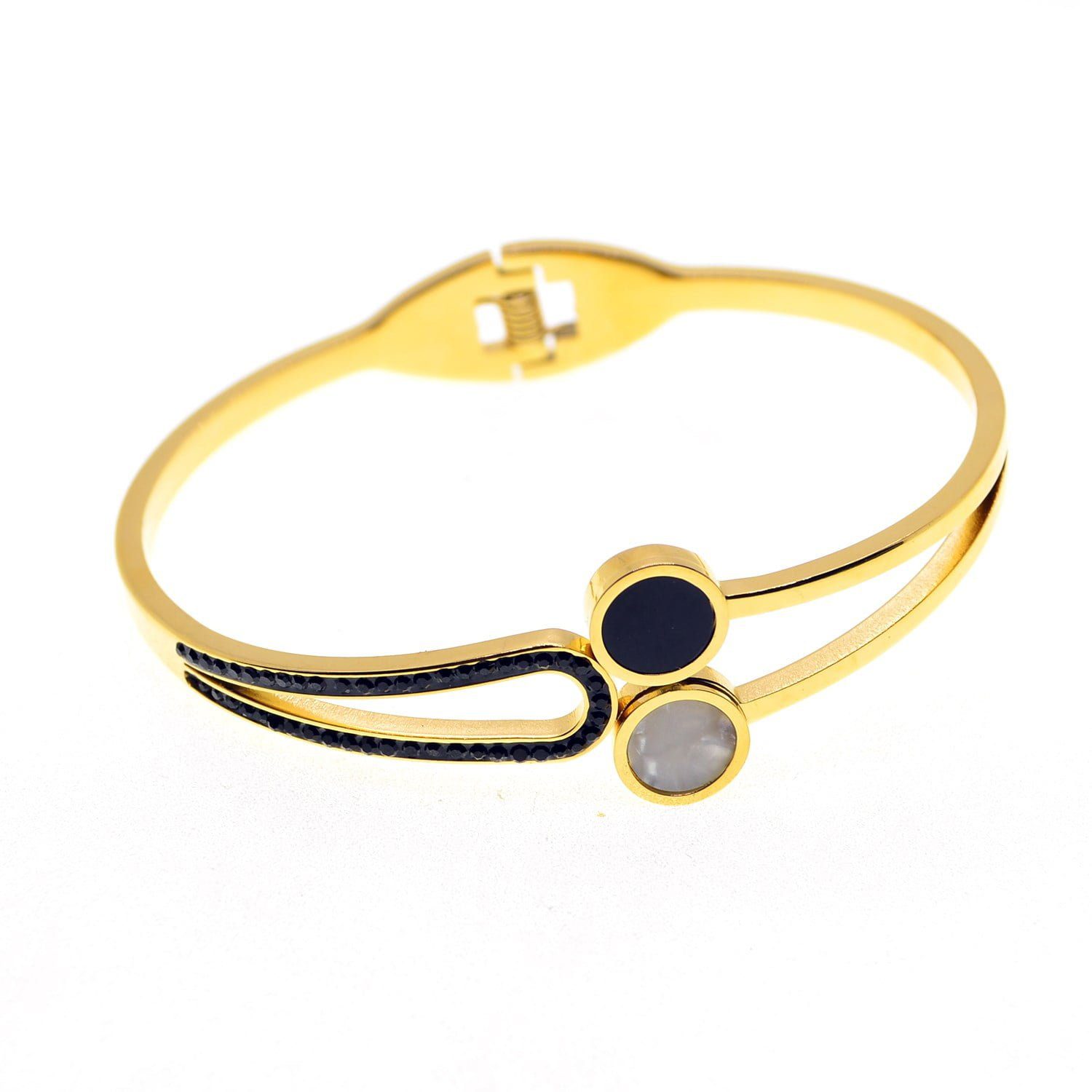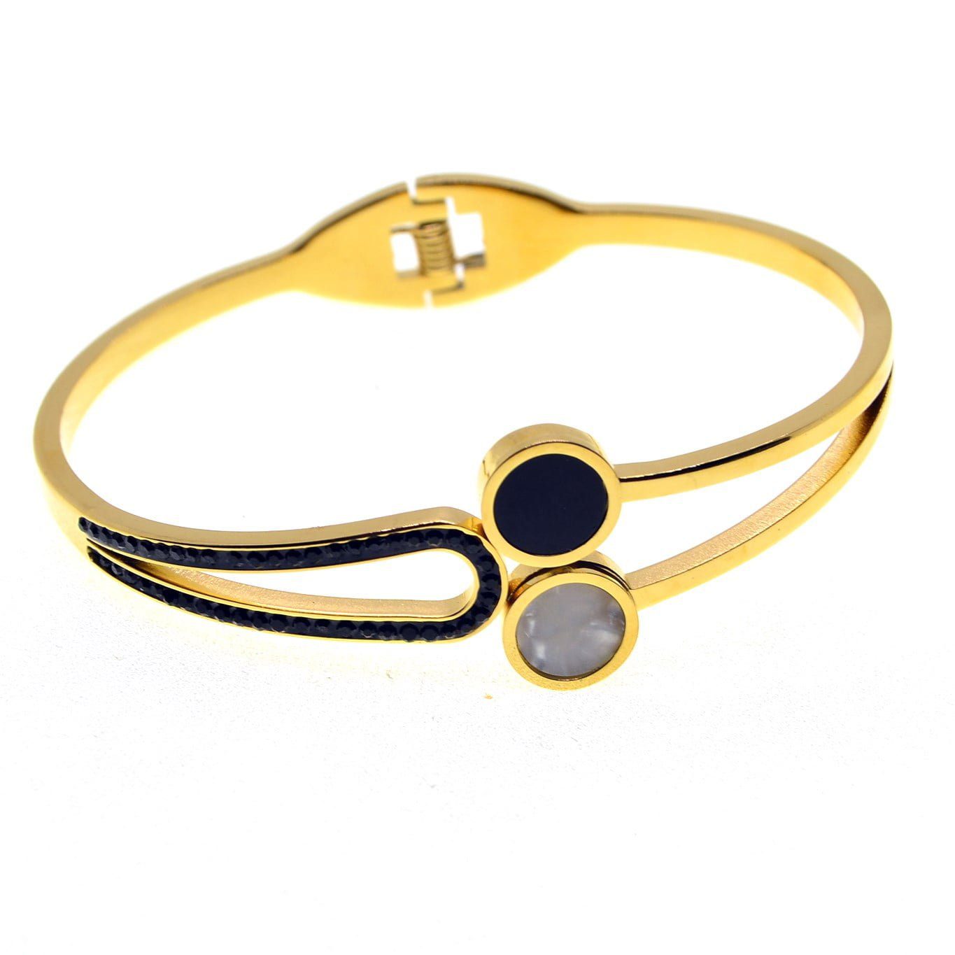 Grossiste Bracelet manchette Seiyah couleur or modèle nacre blanche en acier - 2639
