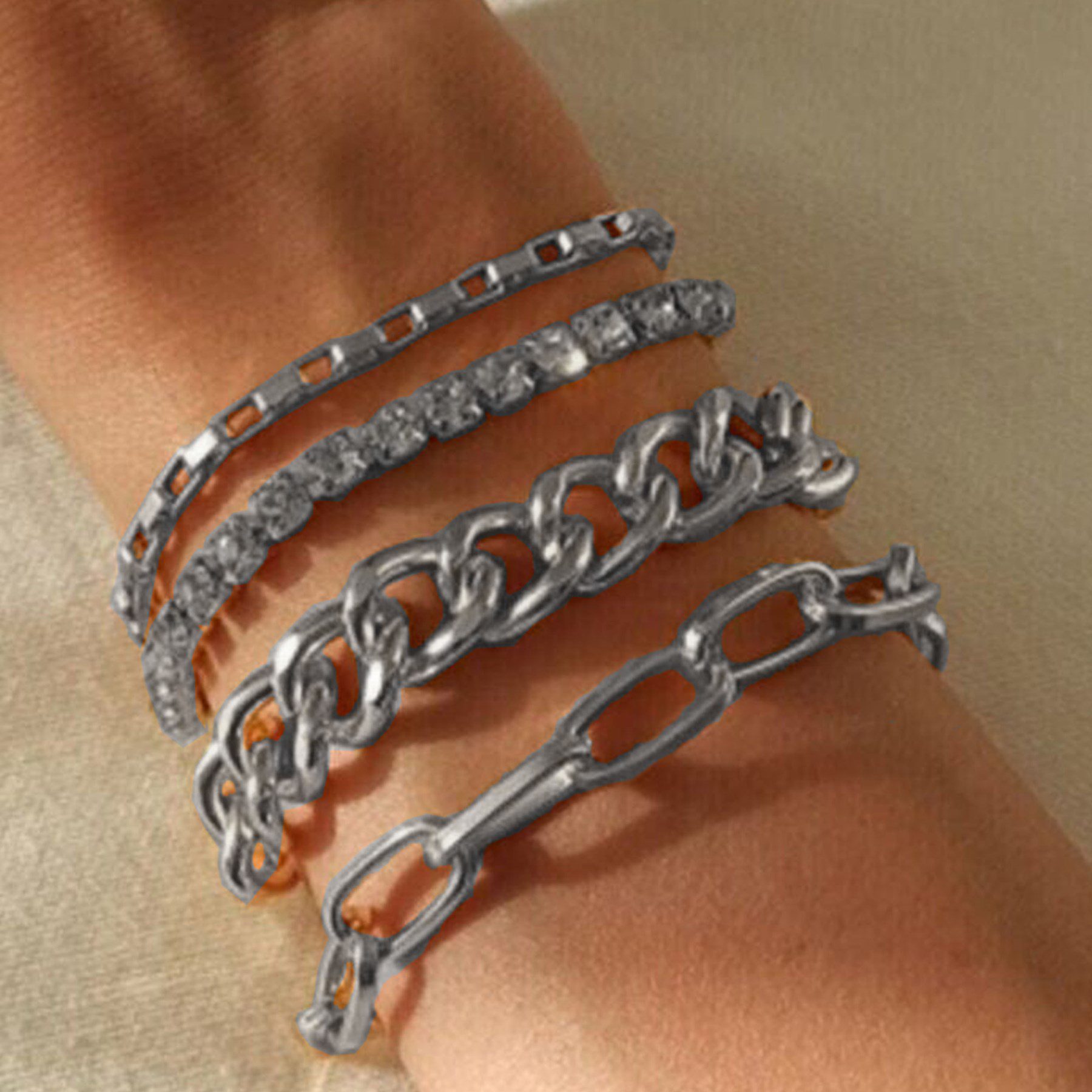 Ensemble de bracelets unis en argent pour femmes, quatre pièces, vente en gros