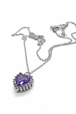 Collier cœur en pierre violette et zircone couleur argent en gros – 2100