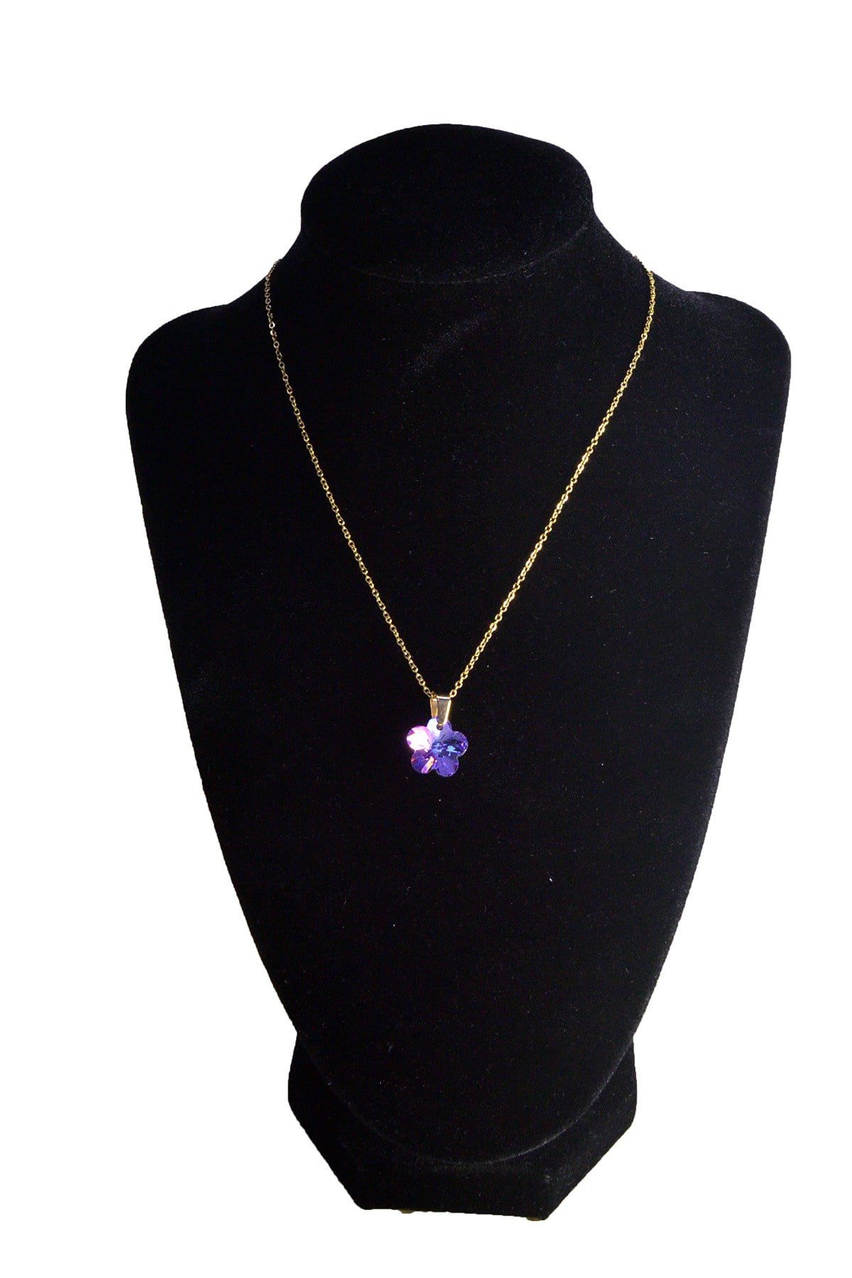 Collier en acier couleur or et violet avec trèfle – 2470