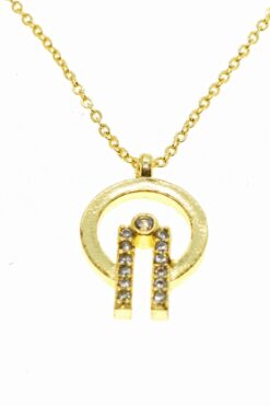 Toptan Altın Renk Zirkon Taşlı Yuvarlak C Model Kolye – 1883
