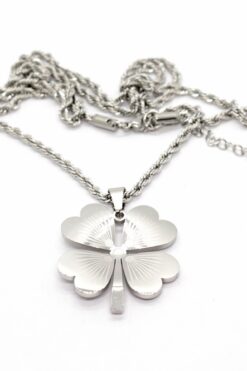 Toptan Gümüş Renk Çelik Burgu Çukur Yonca Kolye – 1441