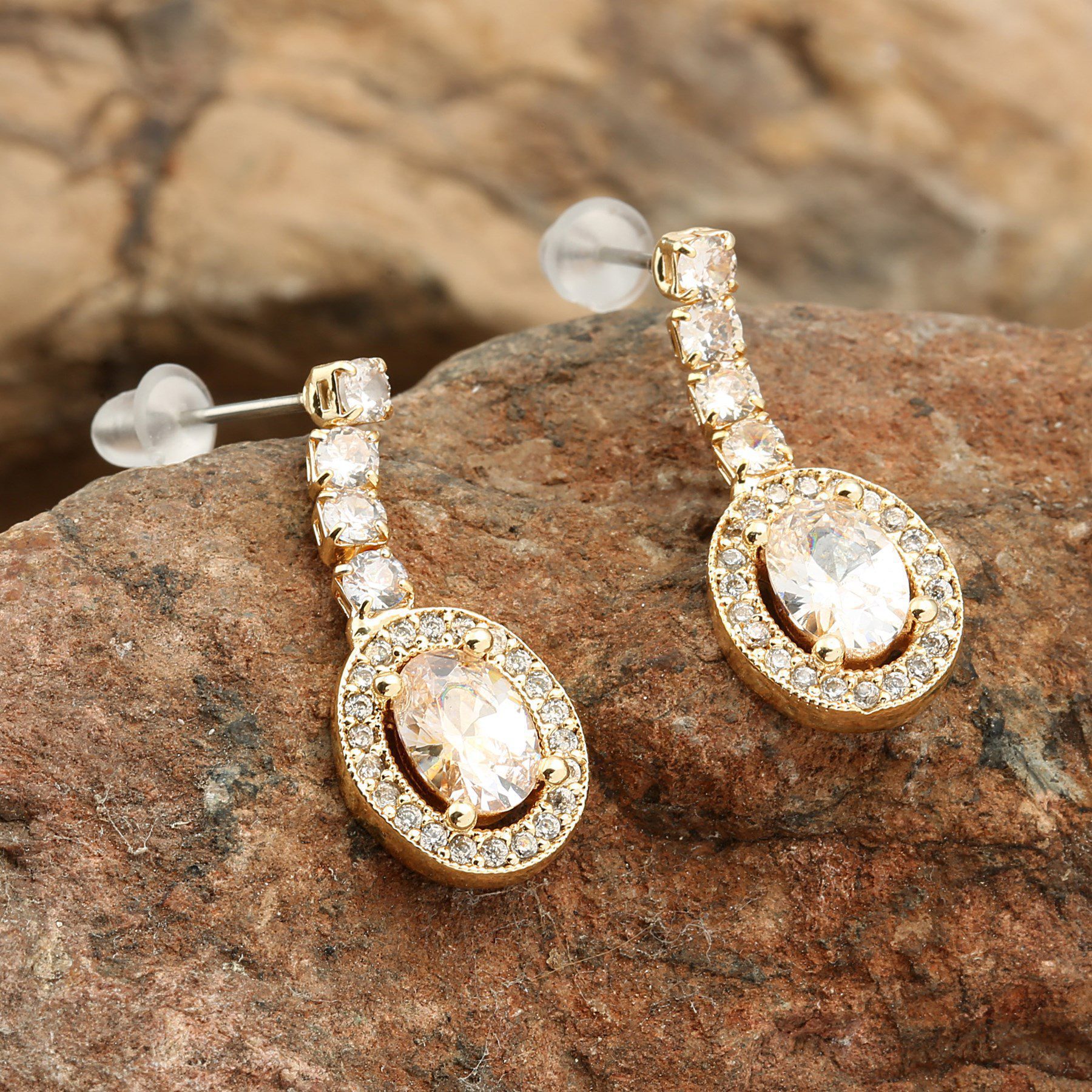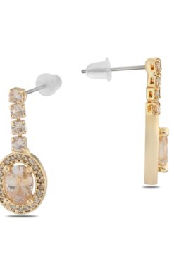 Toptan Altın Renk Şerit Sallantılı Çivili Zirkon Küpe – 1315