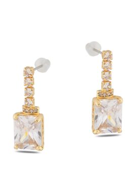 Toptan Altın Renk Şerit Sallantılı Çivili Zirkon Küpe – 1325