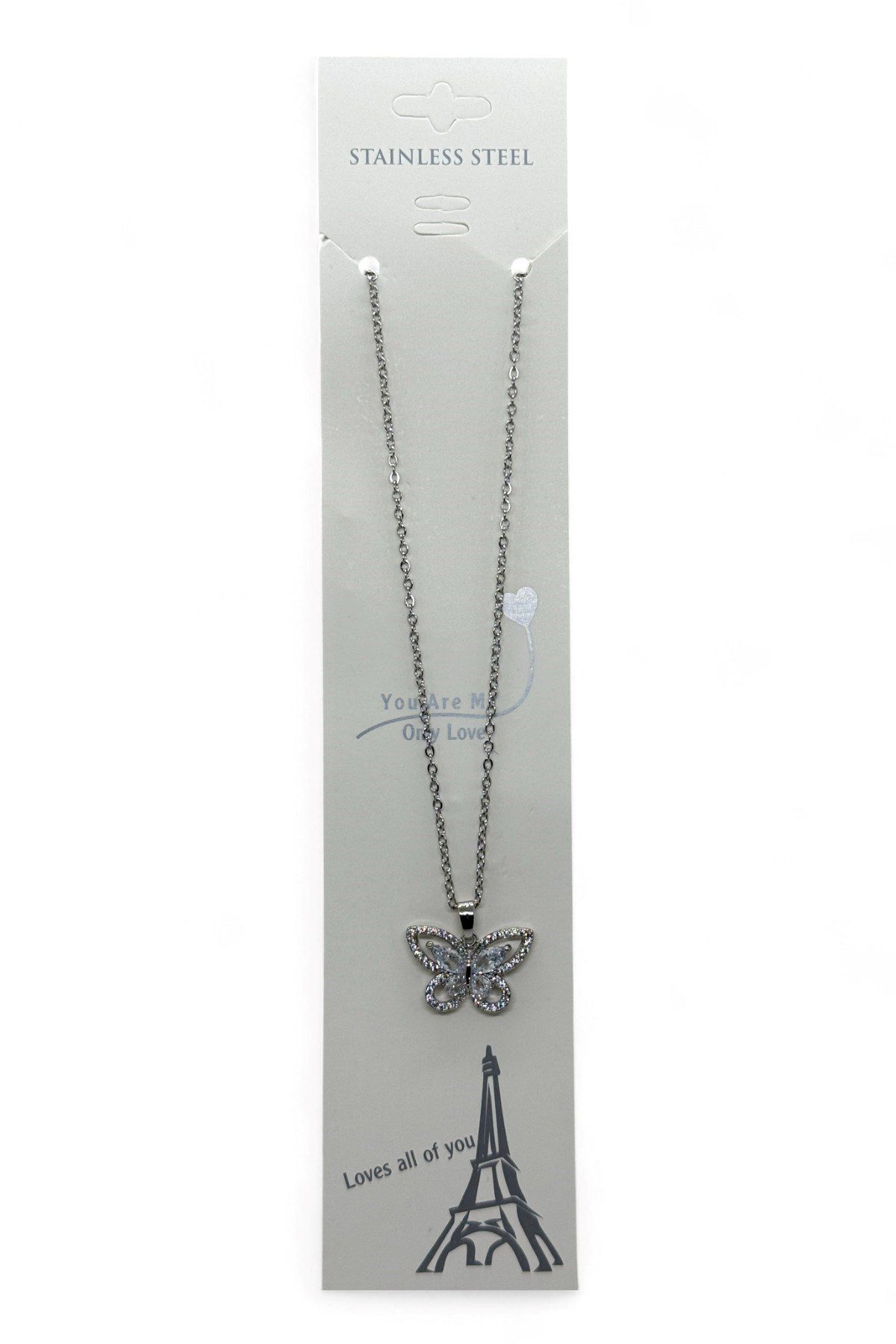 Collier papillon argenté en acier, modèle SF, vente en gros – 3813