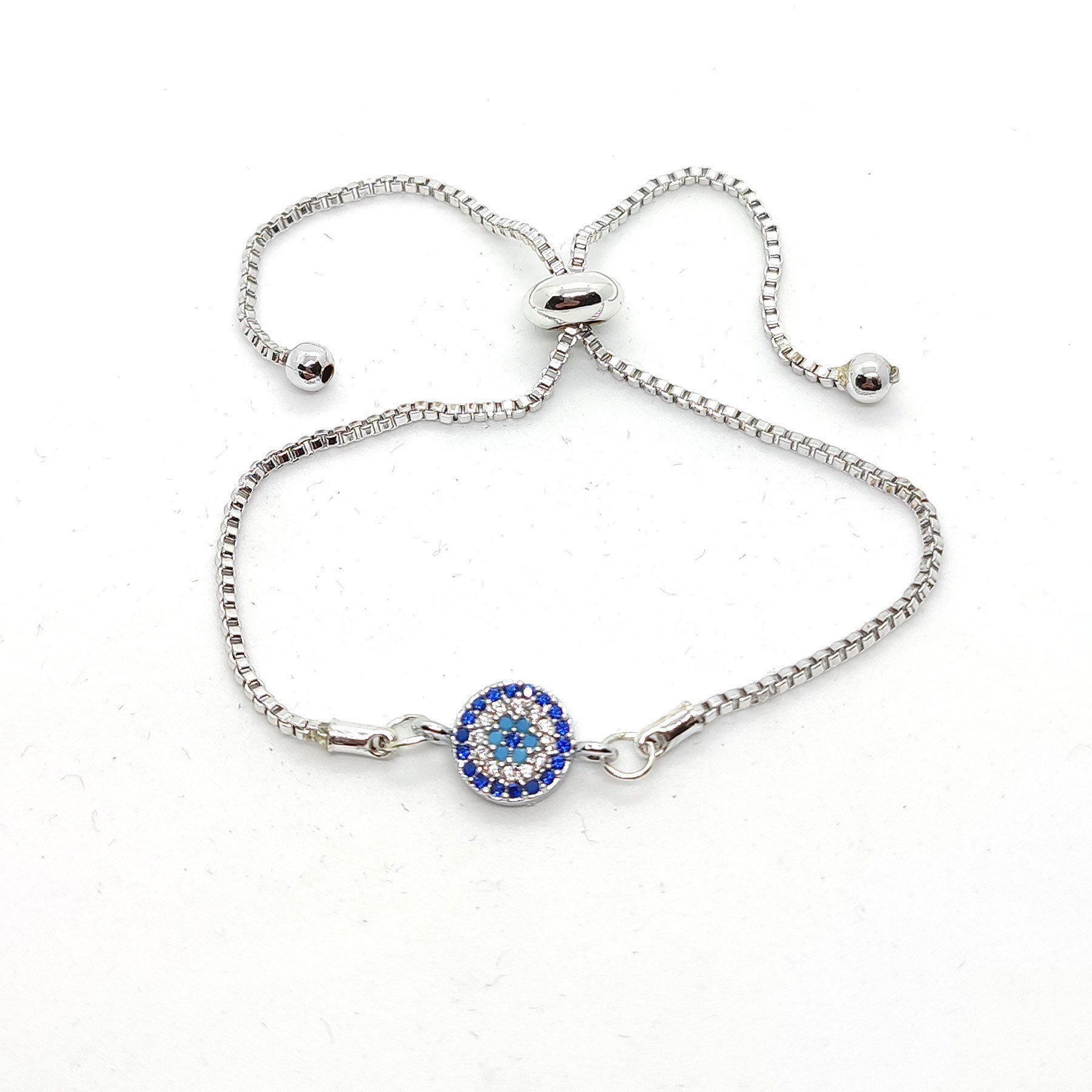 Toptan Gümüş  Renk Zirkon Taşlı Nazar Yuvarlak Göz Asansör Bileklik