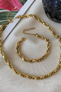 Оптовая Золото Цвет Стали Взаимосвязанные Веревки Унисекс Потускнение Бесплатно Ожерелье И Браслет Стали Набор - 3212