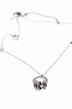 Toptan Gümüş Renk Sf Yuvarlak Taşlı Üç Sallantılı Çelik Kolye – 1561