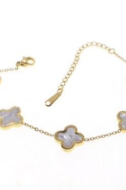 Toptan Altın Renk Beyaz Sedef Yonca Motif Çelik Bileklik – 1555