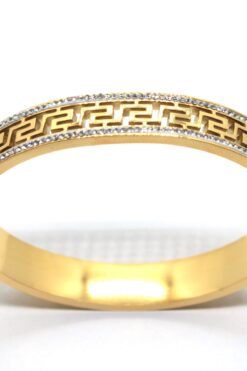 Toptan Altın Renk Çelik Kalın Zirkon Taşlı Motif Kelepçe Bileklik – 1455